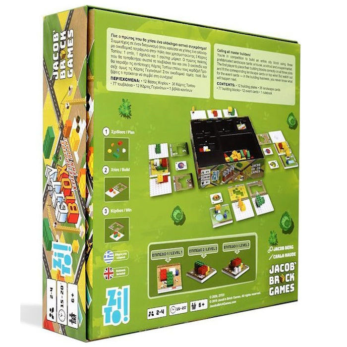 Συμμετέχεις σε έναν διαγωνισμό όπου καλείσαι να χτίσεις ένα ολόκληρο οικοδομικό τετράγωνο στην πόλη σου χρησιμοποιώντας 3 Κάρτες Τοπίου: 1 σπίτι, 1 σχολείο και 1 σούπερ μάρκετ. Ο πρώτος παίκτης που θα τοποθετήσει σωστά τα τουβλάκια του και στα 3 οικόπεδα και θα ταιριάξει τις αντίστοιχες Κάρτες Τοπίου επάνω τους κερδίζει! Πρόσεξε όμως τις Κάρτες Γεγονότων! Στον οικοδομικό τομέα, ποτέ δεν ξέρεις τι πρόκειται να συμβεί στη συνέχεια!