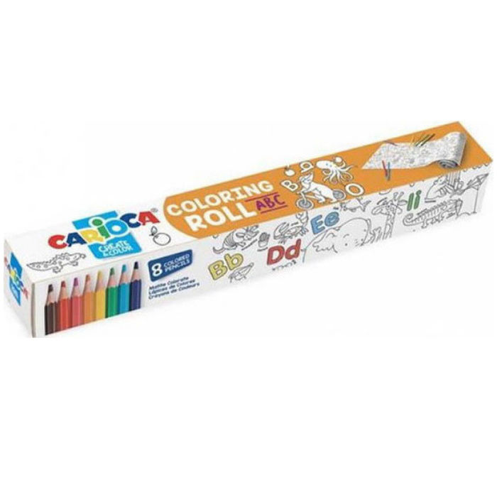 Carioca Coloring Roll ABC – 198x30 cm με 8 Ξυλομπογιές, είναι ένα εκπαιδευτικό και διασκεδαστικό σετ ζωγραφικής, ιδανικό για παιδιά προσχολικής και πρώτης σχολικής ηλικίας.