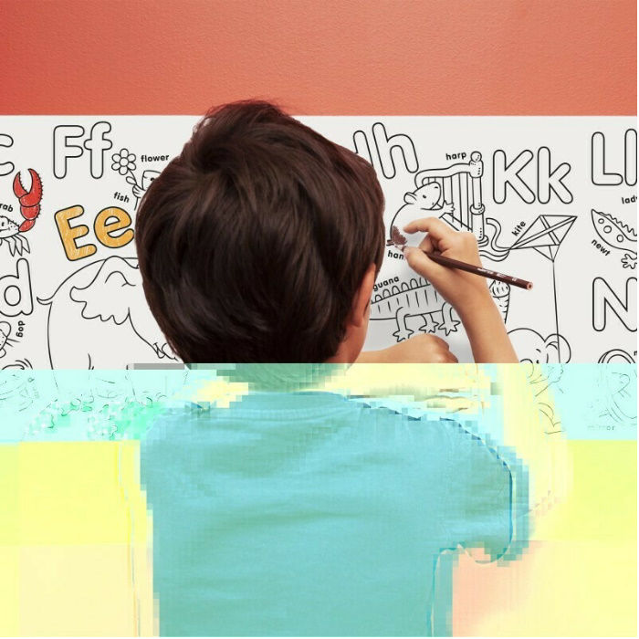 Ρολό χαρτιού διαστάσεων 198 x 30 cm με σχέδια του αλφαβήτου (γράμματα και αντίστοιχες εικόνες) για χρωματισμό.