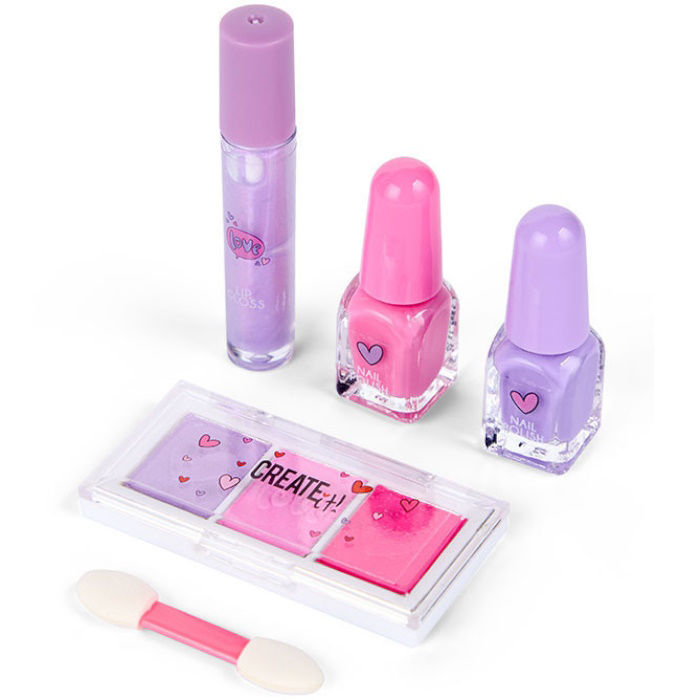 Παιχνίδι μακιγιάζ, της εταιρείας Create it!. Τα παιχνίδια ομορφιάς δεν προσφέρουν μόνο αμέτρητες ώρες διασκέδασης, αλλά ενισχύουν ταυτόχρονα τις κοινωνικές και συναισθηματικές δεξιότητες του παιδιού μέσα από τη διαδικασία της μίμησης, της καλλιέργειας της φαντασίας και της λεπτής κινητικότητας.