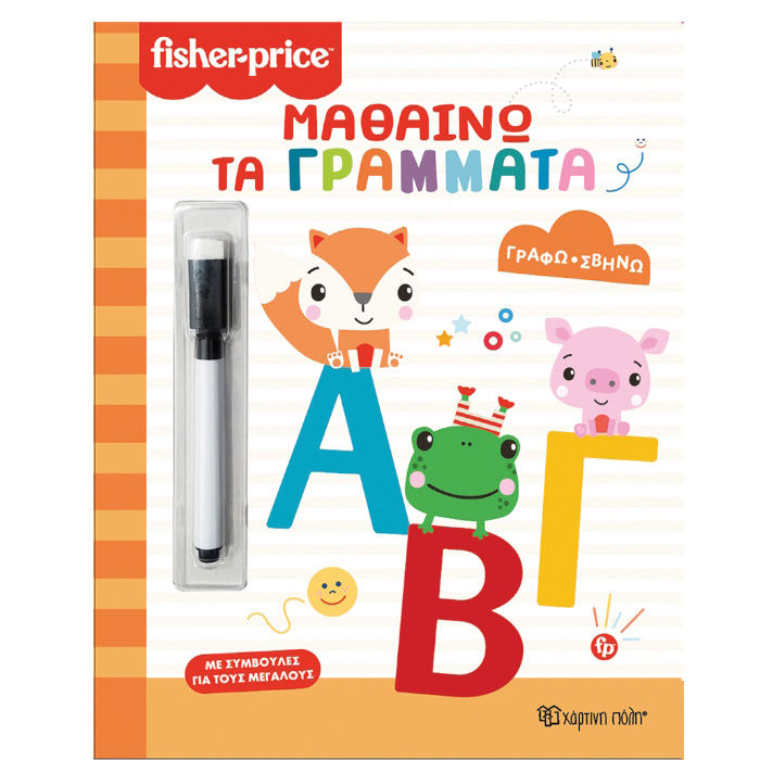 Με τις ειδικές σελίδες και τον μαρκαδόρο που γράφει και σβήνει εύκολα τα παιδιά μπορούν να γράψουν και να σβήσουν ξανά και ξανά και να εξασκηθούν με διασκεδαστικό τρόπο!