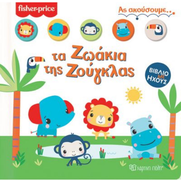 ΕΝΑ ΔΙΑΔΡΑΣΤΙΚΟ ΒΙΒΛΙΟ ΓΙΑ ΤΑ ΖΩΑΚΙΑ ΤΗΣ ΖΟΥΓΚΛΑΣ ΚΑΙ ΤΟΥΣ ΗΧΟΥΣ ΤΟΥΣ!Στη ζούγκλα υπάρχουν ζωάκια πολλά, μεγάλα και μικρά! Μαϊμούδες και ζεβράκια, ιπποπόταμοι, τουκάν και κροκοδειλάκια. Άλλα φωνάζουν δυνατά και άλλα κελαηδούν γλυκά.