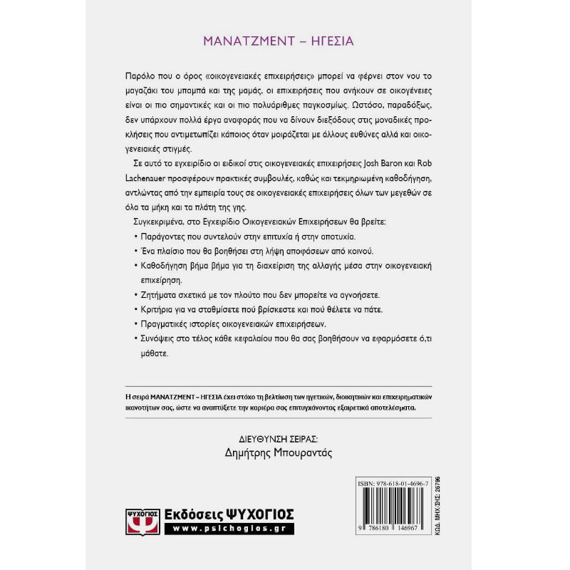 Σε αυτό το εγχειρίδιο οι ειδικοί στις οικογενειακές επιχειρήσεις Josh Baron και Rob Lachenauer προσφέρουν πρακτικές συμβουλές, καθώς και τεκμηριωμένη καθοδήγηση, αντλώντας από την εμπειρία τους σε οικογενειακές επιχειρήσεις όλων των μεγεθών σε όλα τα μήκη και τα πλάτη της γης.