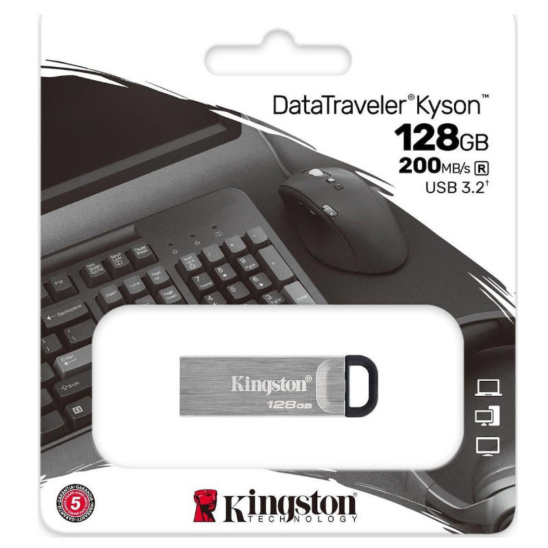 Το DT Kyson προσφέρει ταχύτητες USB 3.2 έως 200MB/s για ανάγνωση και έως 128GB χωρητικότητα για γρήγορη μεταφορά και αποθήκευση μεγάλων αρχείων όπως ταινίες, μουσική, παιχνίδια και φωτογραφίες.