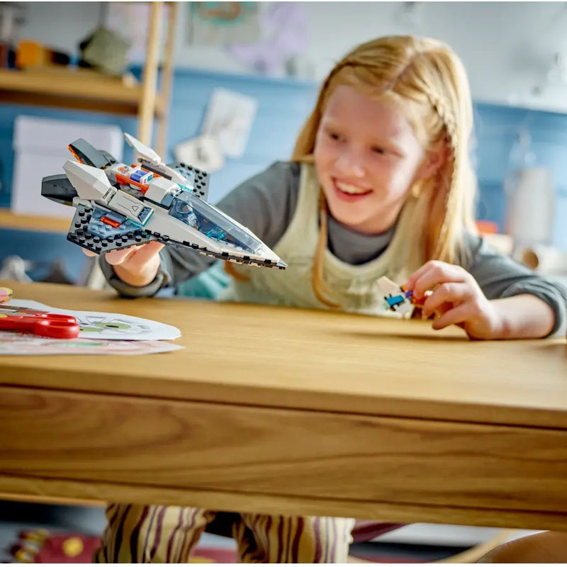 Ενεργοποιήστε τους κύριους προωθητήρες, επιλέξτε την ταχύτητα φωτός και ταξιδέψτε στα πιο μακρινά σημεία του διαστήματος με το υπερηχητικό διαστρικό διαστημόπλοιο. Μεταμορφώστε το ρομπότ ντρόουν σε ένα ισχυρό τζετ-πακ για τολμηρές διαστημικές βόλτες και εξερεύνηση στον πλανήτη. Απολαύστε απεριόριστες διαγαλαξιακές περιπέτειες με το διαστημικό πλήρωμα LEGO® City!