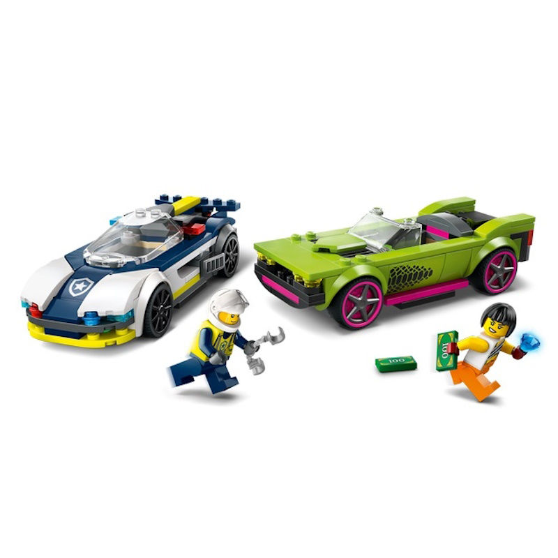 Έχει γίνει απόδραση από τη φυλακή! Μπείτε γρήγορα μέσα στο κόκπιτ του απίθανου αστυνομικού αναχαιτιστή και βγείτε στον δρόμο για καταδίωξη ενός από τους πιο διαβόητους κακοποιούς της LEGO® City. Αυτό το όχημα είναι εξοπλισμένο με μια μεγάλη πίσω αεροτομή, απίθανες ζάντες και γυαλιστερά ελαστικά χαμηλού προφίλ για έξτρα ταχύτητα και πρόσφυση. Πάρτε κλειστές στροφές και εκτελέστε απίθανα γλιστρήματα για να ξεπεράσετε την κακοποιό και το muscle car της υψηλής ταχύτητας!