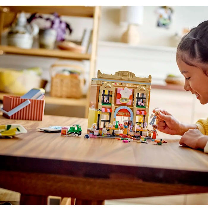 Το LEGO Friends Restaurant and Cooking School 42655 είναι το απόλυτο σετ για παιδιά που αγαπούν τη μαγειρική και το παιχνίδι ρόλων. Απευθύνεται σε αγόρια και κορίτσια από 8 ετών που θέλουν να διευθύνουν το δικό τους εστιατόριο αλλά και να μάθουν τα μυστικά της κουζίνας. Αυτό το εντυπωσιακό κτίριο συνδυάζει δύο κόσμους σε ένα, προσφέροντας ατελείωτες ιστορίες δημιουργίας, από την προετοιμασία του μενού μέχρι το σερβίρισμα των πελατών.