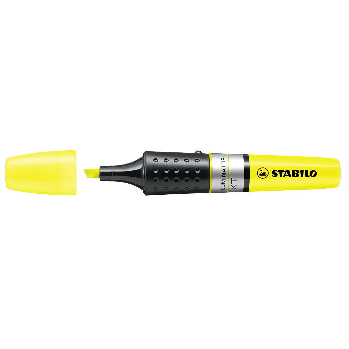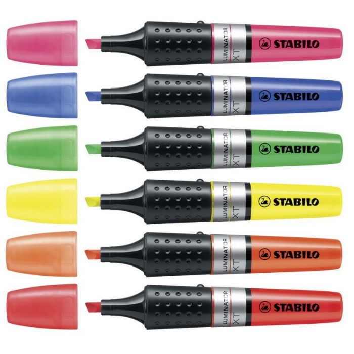 Μαρκαδόρος υπογράμμισης LUMINATOR STABILO. Το Stabilo Luminator ανήκει στην κατηγορία των μαρκαδόρων υπογράμμισεως υγρής μελάνης. Το ιδιαίτερα μεγάλο δοχείο μελάνης και η ανθεκτική του μύτη εγγυώνται τη μεγάλη διάρκεια ζωής του. Με μοντέρνα εμφάνιση και διαφανές στέλεχος με μετρητή, για το συνεχές έλεγχο της στάθμης της μελάνης. Έχει ομοιόμορφη διάχυση μελάνης μέχρι την τελευταία σταγόνα ενώ είναι κατάλληλο για τα αεροπορικά σας ταξίδια μιας που το μελάνι του δεν στάζει ακόμη και αν αλλάξει η ατμοσφαιρική πίεση. Διαθέτει λαβή που δεν γλυστράει αλλά και με μύτη ειδικά σχεδιασμένη για εύρος γραφής 2 και 5mm.