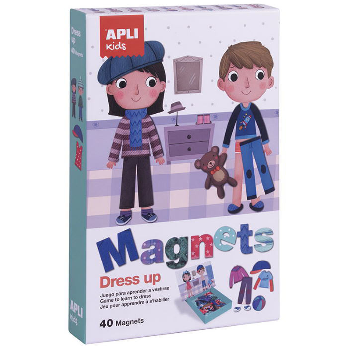 Διασκεδαστικό και εκπαιδευτικό μαγνητικό παιχνίδι. Παιχνιδιάρικο, πολύχρωμο, απλό και εύχρηστο με εξαιρετικές εικόνες. Ενθαρρύνει την παρατηρητικότητα, ενισχύει την συγκέντρωση, προσοχή και την περιέργεια των παιδιών για όσα δεν γνωρίζουν. Ακόμη, επιταχύνει την προσαρμογή τους στα κοινωνικά δρώμενα. Ντύστε με προσθαφαιρούμενα μαγνητικά ρούχα τους 2 χαρακτήρες! Η συσκευασία περιέχει 40 μαγνητάκια. Διασκεδαστικό, εκπαιδευτικό παιχνίδι που μαθαίνει στα παιδάκια τα ρούχα