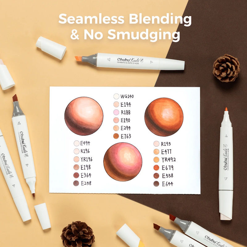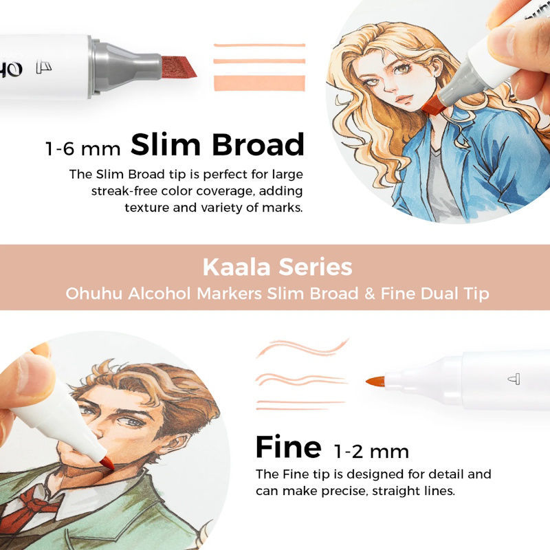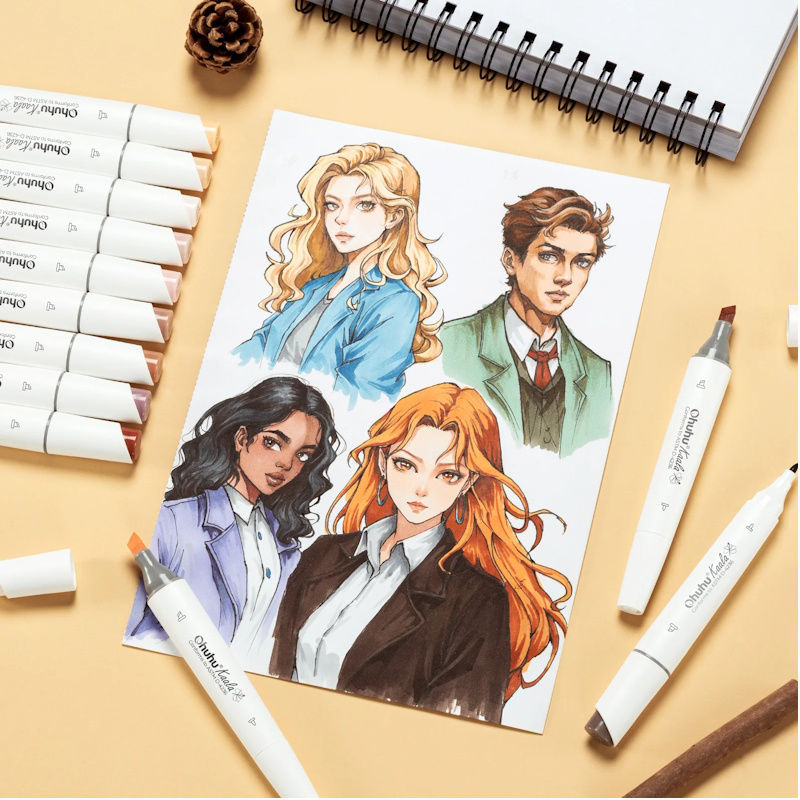 Οι μαρκαδόροι Ohuhu Alcohol Art Markers Skin Tones είναι ένα σετ 24 τεμαχίων αλκοολούχης βάσης με διπλή μύτη Chisel και Fine, σχεδιασμένοι για καλλιτέχνες που εργάζονται σε πορτρέτα, manga και illustration με φυσικές αποχρώσεις δέρματος.