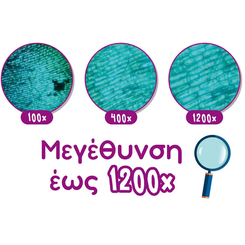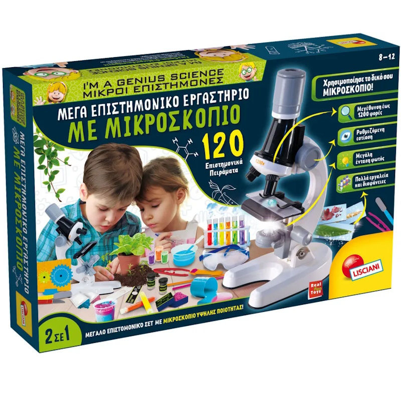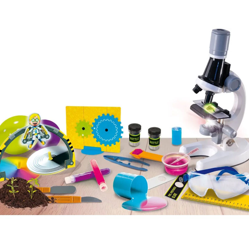 Η Επιτραπέζιο Mega Εργαστήριο Με Μικροσκόπιο (89338). Ο πειραματισμός με την επιστήμη δεν ήταν ποτέ τόσο εύκολος και διασκεδαστικός! Χάρη σε αυτό το πολύ πλούσιο επιστημονικό σετ 2 σε 1, θα έχετε όλα τα υλικά που χρειάζεστε για να πραγματοποιήσετε 120 ασφαλή πειράματα. Μια πραγματικά ολοκληρωμένη επιστημονική εμπειρία: χημεία, φυσική, οπτική, βοτανική, ορυκτολογία, γεωφυσική και πολλά άλλα. Επίσης, περιέχει ένα φανταστικό μικροσκόπιο υψηλής ποιότητας με μεγέθυνση έως 1200 φορές, ιδανικό για να πραγματοποιήσετε την έρευνά σας και να ανακαλύψετε ο,τιδήποτε είναι αόρατο στο μάτι. Για ατέλειωτη γνώση και διασκέδαση!