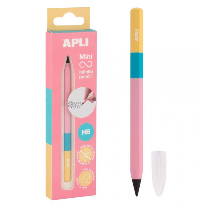 Μολύβι Mini Tricolor Infinite Pencils σχεδιασμένο σε μια μίνι έκδοση με την ίδια ικανότητα να γράφει έως και 16 χλμ. χωρίς την ανάγκη για ξύσιμο. Παστέλ χρώματα για να εμπνεύσει τη δημιουργικότητα και τη χαρά σε κάθε γραπτό. Κάθε συσκευασία περιέχει 1 Infinite pencil  και 1 ημιδιαφανές προστατευτικό καπάκι. Το καινοτόμο μολύβι είναι ιδανικό για όσους αναζητούν ανθεκτικότητα και άνεση σε ένα προϊόν. Ιδανικό για να πάρετε οπουδήποτε και να απελευθερώσετε τη δημιουργικότητά σας!