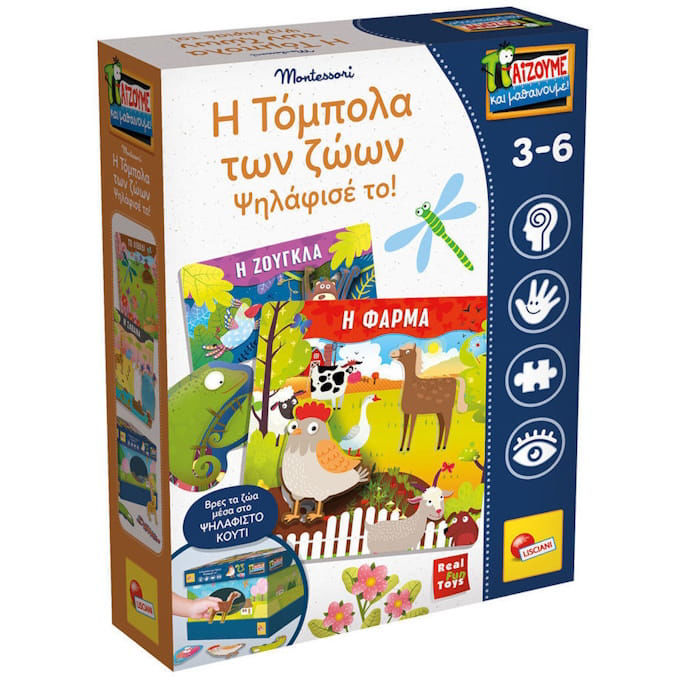 Το εκπαιδευτικό παιχνίδι Montessori Η Τόμπολα των ζώων - Ψηλάφισέ το της Lisciani είναι ένα διαδραστικό εργαλείο που εισάγει τα παιδιά στο φυσικό περιβάλλον και το βασίλειο των ζώων μέσω της αισθητηριακής αντίληψης. Ακολουθώντας τις παιδαγωγικές αρχές της Μαρίας Μοντεσσόρι, το παιχνίδι εστιάζει στην ανάπτυξη της αφής, επιτρέποντας στους μικρούς χρήστες να αναγνωρίσουν σχήματα και υφές χωρίς να βασίζονται αποκλειστικά στην όραση.