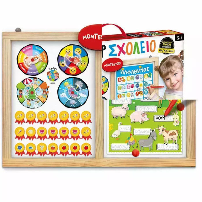 Ένας μεγάλος μαυροπίνακας για να κρεμάσετε στον τοίχο για να κάνετε πολλές εκπαιδευτικές δραστηριότητες βασισμένες στη μέθοδο Montessori. Με το ρολόι, το ημερολόγιο και τον τροχό εποχής, μπορείτε να δημιουργήσετε τη δική σας μέρα! Επιπλέον, μια τεράστια σχολή γραφής και σχεδίου για τον μεγάλο πίνακα εγγραφής και διαγραφής!