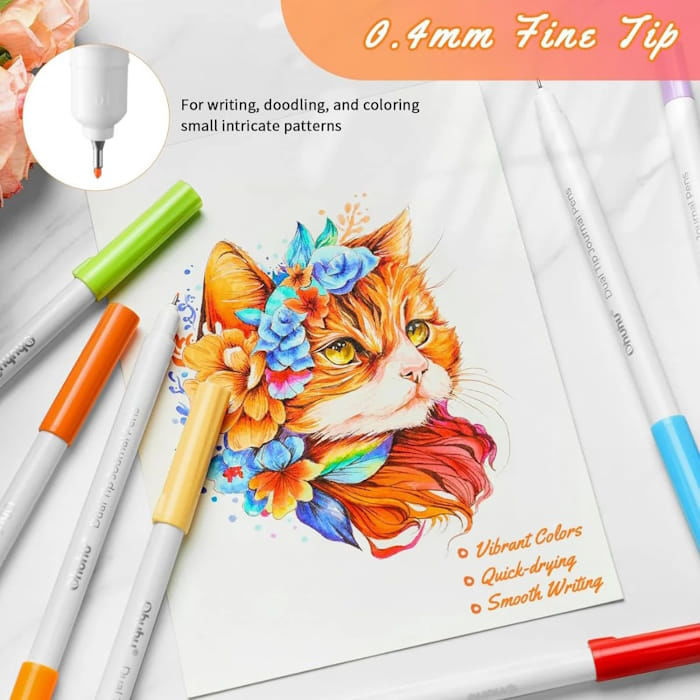 Το σετ διαθέτει 40 επιλεγμένα χρώματα με μελάνι που έχει ως βάση το νερό, εξασφαλίζοντας ομαλή ροή και δυνατότητα ανάμειξης χωρίς οσμές. Η διπλή μύτη επιτρέπει στον χρήστη να εναλλάσσεται μεταξύ της εύκαμπτης μύτης πινέλου για γεμίσματα και της μύτης fineliner 0.4mm για λεπτομέρειες και περιγράμματα, καθιστώντας τους ιδανικούς για σύνθετα καλλιτεχνικά έργα.