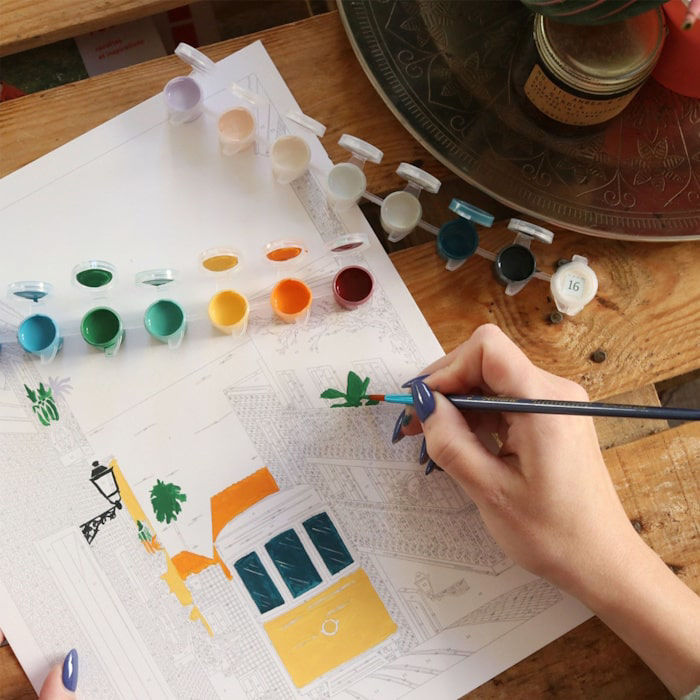 Η διαδικασία ζωγραφικής είναι χαλαρωτική και εμπνευστική. Το σετ περιλαμβάνει προτυπωμένο καμβά, σετ ακρυλικών χρωμάτων και πινέλα ακριβείας, επιτρέποντας σε όλους να δημιουργήσουν ένα έργο με καλλιτεχνικό αποτέλεσμα χωρίς να απαιτείται προηγούμενη εμπειρία. Η εικόνα του τραμ και των πολύχρωμων κτιρίων προσδίδει θερμότητα και ρετρό ατμόσφαιρα στον χώρο όπου θα εκτεθεί.