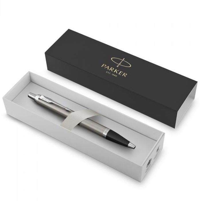 Nέα συλλογή Parker Im Essential. Το νέο Essential Pen είναι το πλήρες «must have» της Parker. Αξιόπιστο με κλασικό διαχρονικό σχέδιο, ιδανικό για να δημιουργήσει μια καλή πρώτη εντύπωση. Το στυλό είναι κατασκευασμένο από ευγενή ορείχαλκο, καλυμμένο με πολλές στρώσεις όμορφου ματ βερνικιού. Το στυλό έχει κλιπ χρωμίου και δαχτυλίδι με χαραγμένο το λογότυπο Parker. Το προϊόν είναι συσκευασμένο στο αρχικό κουτί Parker