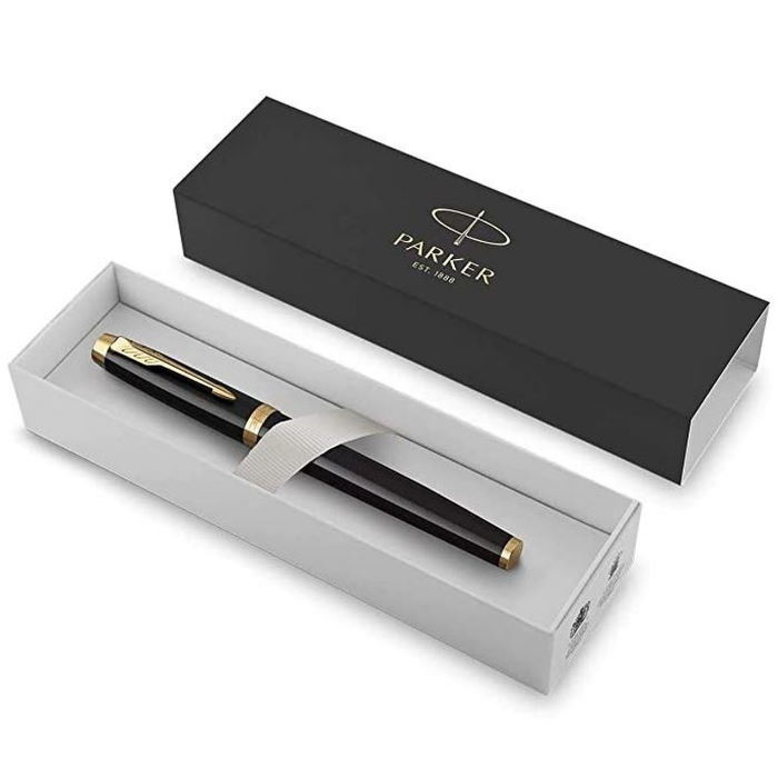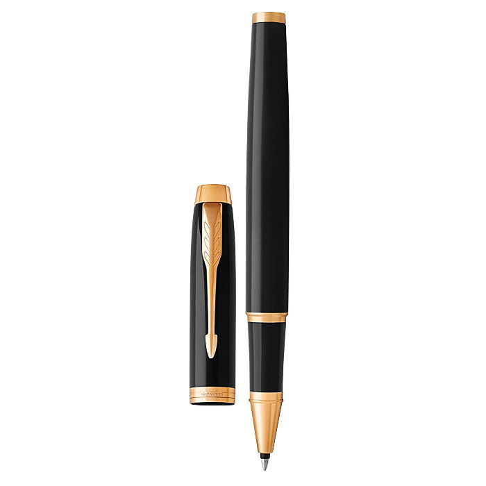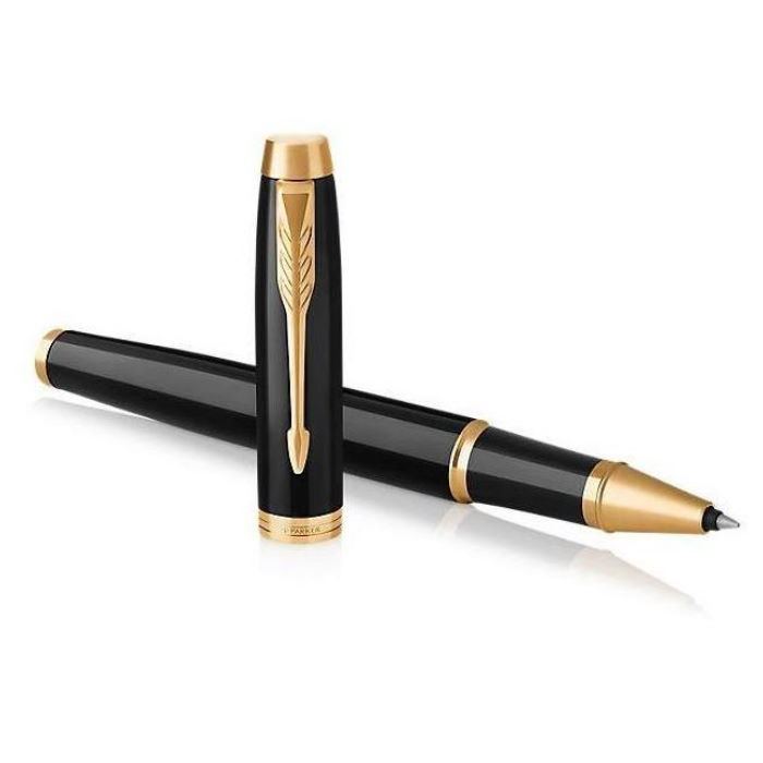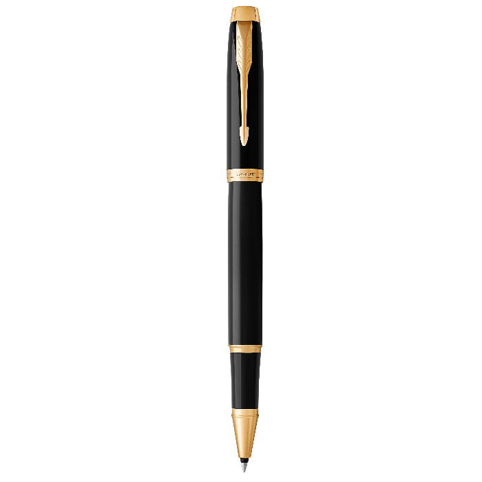 Parker Roller Ball Γυαλιστερή μαύρη λάκα με επίχρυσα διακοσμητικά στοιχεία.