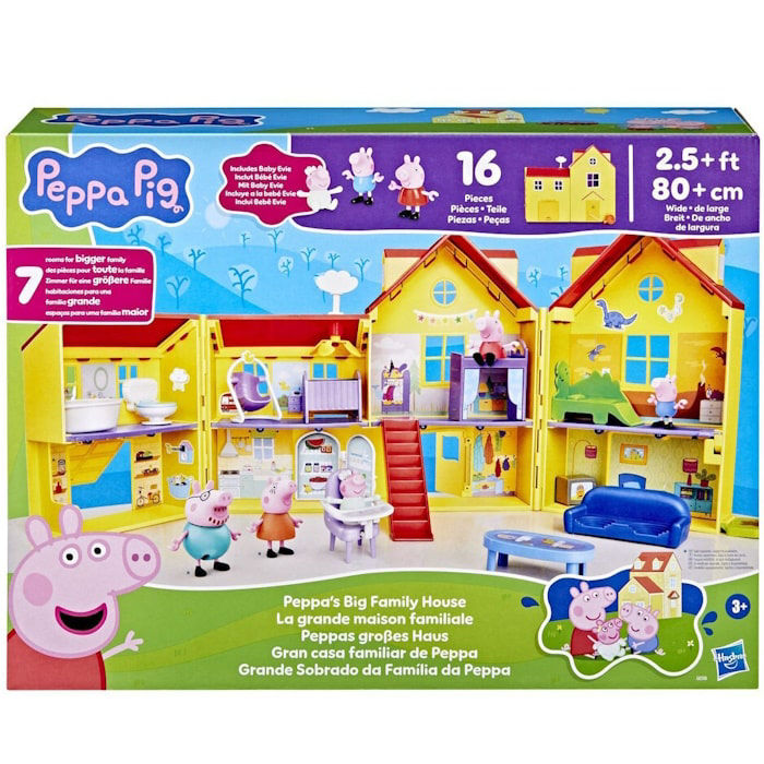 Η Hasbro δημιούργησε το Peppas Big Family House με εξαιρετική προσοχή στην ποιότητα και την ασφάλεια, χρησιμοποιώντας ανθεκτικά υλικά και φωτεινά χρώματα που τραβούν το ενδιαφέρον των μικρών παιδιών. Το σπίτι ανοίγει εύκολα, αποκαλύπτοντας όμορφα διαμορφωμένα δωμάτια με αξεσουάρ όπως έπιπλα, κουζίνα, καθιστικό και υπνοδωμάτιο. Είναι ιδανικό για παιχνίδι ρόλων που ενισχύει τη φαντασία και τη συναισθηματική ανάπτυξη.
