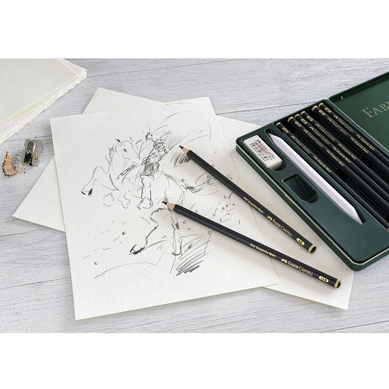 Περιεχόμενο: 8 μολύβια γραφίτη Pitt Graphite Matt σε HB, 2B, 4B, 6B, 8B, 10B, 12B, 14B καθώς και αξεσουάρ
