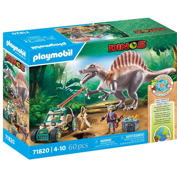 Το Playmobil Dinos Επίθεση Σπινόσαυρου στο Εξερευνητικό Όχημα 71820 στήνει μια δυναμική σκηνή προϊστορικής εξερεύνησης όπου τίποτα δεν πάει όπως το περιμένεις. Ο εξερευνητής κινείται με το όχημά του σε άγνωστο έδαφος, μέχρι τη στιγμή που εμφανίζεται ο σπινόσαυρος και η ιστορία αλλάζει κατεύθυνση. Είναι κατάλληλο για παιδιά από 4 ετών και άνω και ιδανικό για παιχνίδι ρόλων στο σπίτι.