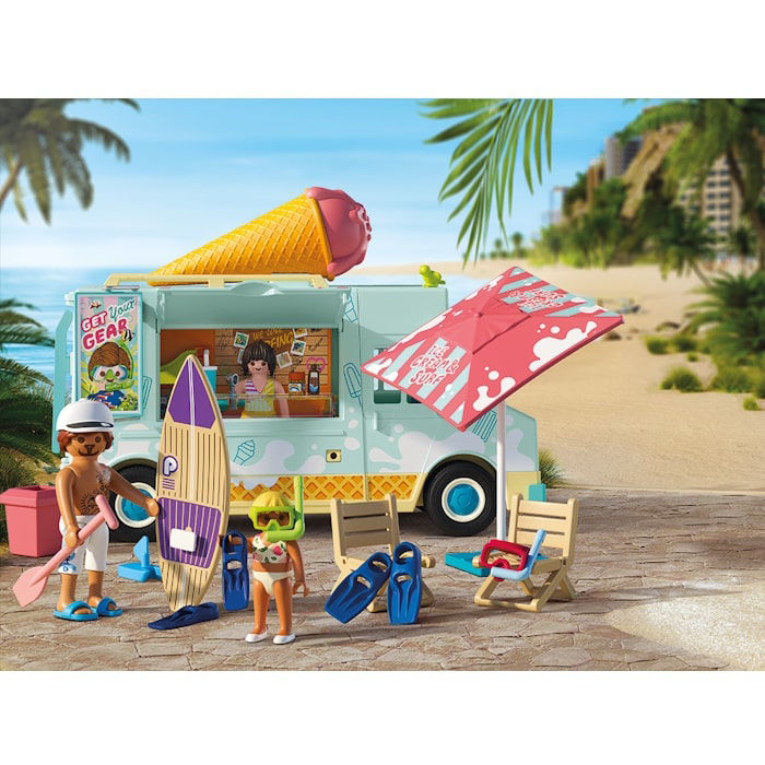 Φιγούρες: 1 γυναίκα, 1 άντρας με καπέλο, 1 κορίτσι; Ζωάκια: 1 πουλί; Αξεσουάρ: 1 φορτηγό με μεγάλο χωνάκι παγωτού στην οροφή, 1 πάγκος με παγωτό φράουλα, σοκολάτα και βανίλια, 1 ποτήρι με καπάκι, 1 σωληνάριο, 1 ποτηράκι με καλαμάκι, 2 χωνάκια παγωτού με διάφορες μπάλες που αλλάζουν, 1 σανίδα του σερφ, 1 κουπί, 2 βατραχοπέδιλα, 2 μάσκες με αναπνευστήρα, 3 κουτιά με φρούτα, 1 ομπρέλα θαλάσσης, 2 πτυσσόμενες καρέκλες, 1 καλάθι απορριμάτων, 1 παιχνίδι ιστιοφόρο, 1 κουτάλα παγωτού