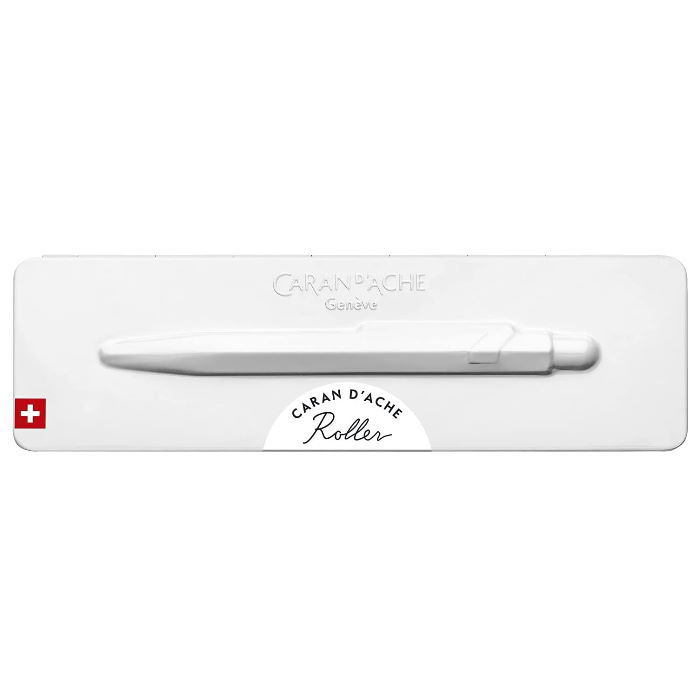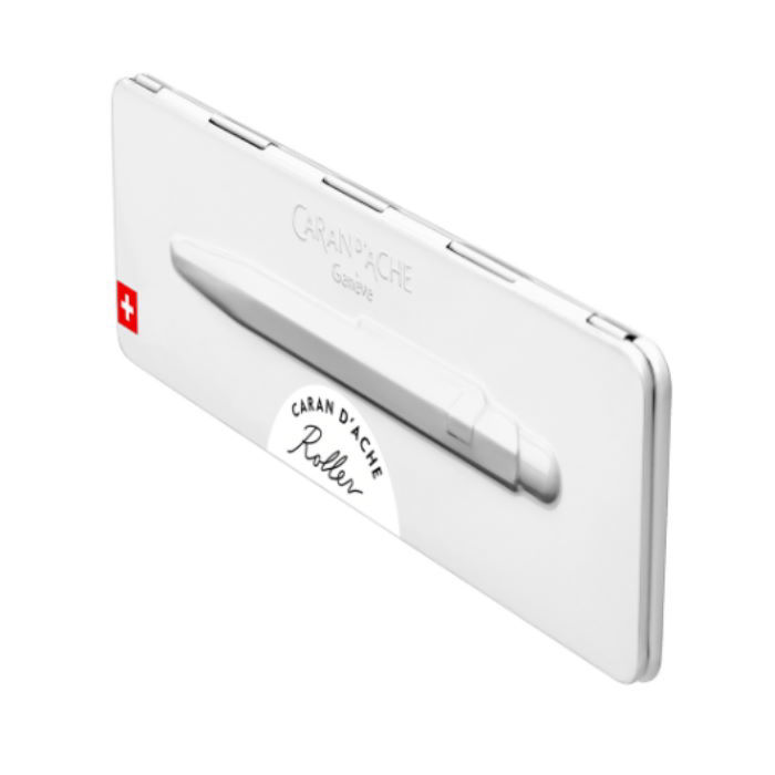 Λευκή μεταλλική slimpack με αυτοκόλλητο που ταιριάζει με το μοντέλο 849 Roller και υποδεικνύει τη μορφή γραφής σε ρολό. Διάσταση: 19,9 x 5,9 x 1,7 cm