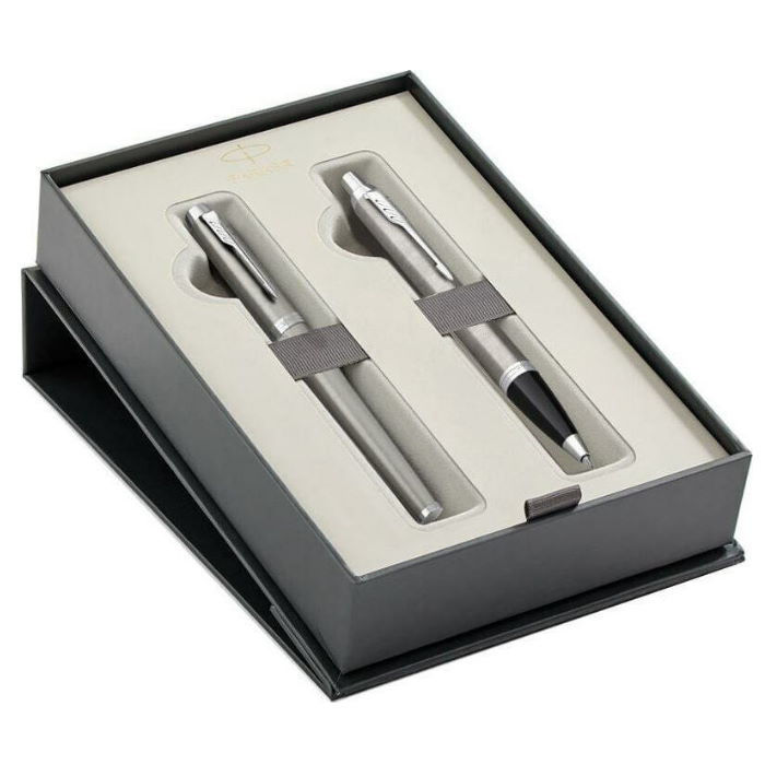 Η σειρά ΙΜ της Parker υπόσχεται να εντυπωσιάσει, με μια βαριά μεταλλική κατασκευή που παράγει μια αίσθηση υψηλής ποιότητας. Αυτό το σετ Πένα και στυλό έρχεται σε ένα διαχρονικό ασημί. Με την εκπληκτική ισορροπία μεταξύ ποιότητας, λειτουργικότητας και τιμής, το σετ αυτό αποτελεί ιδανική λύση δώρου, είτε δίνοντάς το το σε έναν απόφοιτο, σε κάποιο αγαπημένο σας πρόσωπο εν’ όψει εορτών, ευχαριστώντας για ένα γαμήλιο πάρτι ή ακόμα και εταιρικές εκδηλώσεις. Διαθέτει ΠέναEssential Stainless Steel CT και το στυλό της ίδιας σειράς.