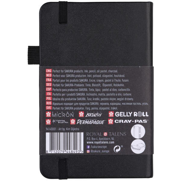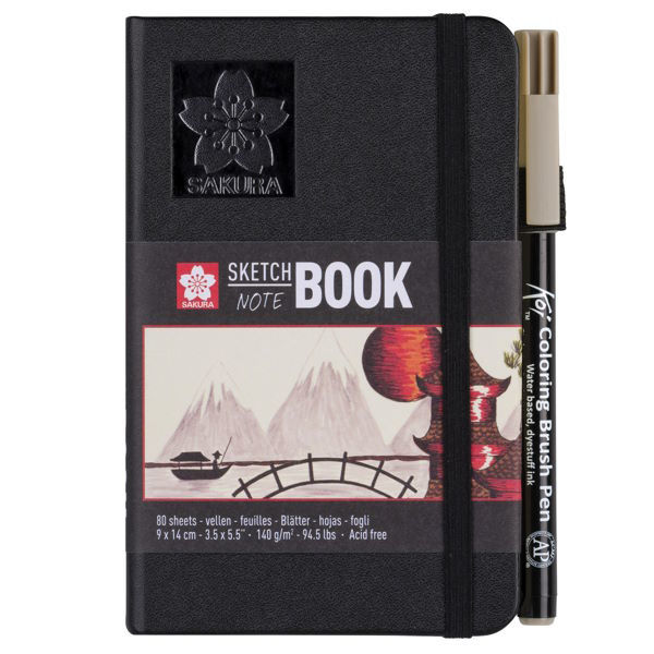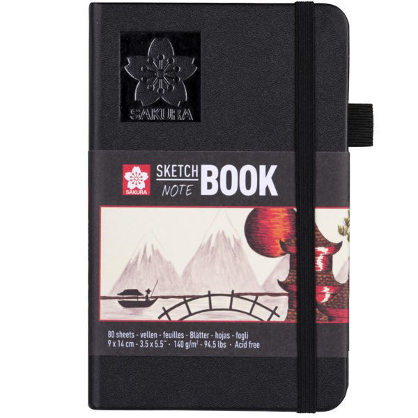 Το Sakura Sketch - Note Book 9X14 cm με 80 φύλλα κρεμ 140 g/m2 χωρίς οξύ χαρτί διατηρεί όλες τις δημιουργίες μελανιού, μολυβιού, λαδιού ή κάρβουνο σε ένα μέρος. Στο σκληρό εξώφυλλο έχει θήκη για ένα στυλό - μολύβι. Στο πίσω μέρος του Sketch - Note Book περιλαμβάνεται ένας επεκτάσιμος φάκελος για την αποθήκευση σκίτσων και σημειώσεων. Η ελαστικό κρδόνι κλεισίματος εξασφαλίζει ότι το βιβλίο παραμένει κλειστό και συμπαγές όταν ταξιδεύετε. Sakura Sketch - Note Books είναι ιδανικά για σκίτσο και γράψιμο.