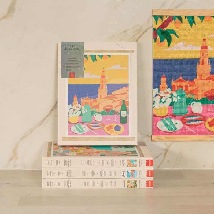 Υπάρχουν έργα που δεν τα δημιουργείς, τα ανακαλύπτεις. Το Small Diamond Painting Menton είναι ένα από αυτά. Η καλλιτέχνις Gisele Murias μεταφέρει το φως και τη ραθυμία της Γαλλικής Ριβιέρας σε ένα σετ που δεν ζητά δεξιότητα, αλλά διάθεση να χαλαρώσεις και να αφήσεις τον χρόνο να ρέει.