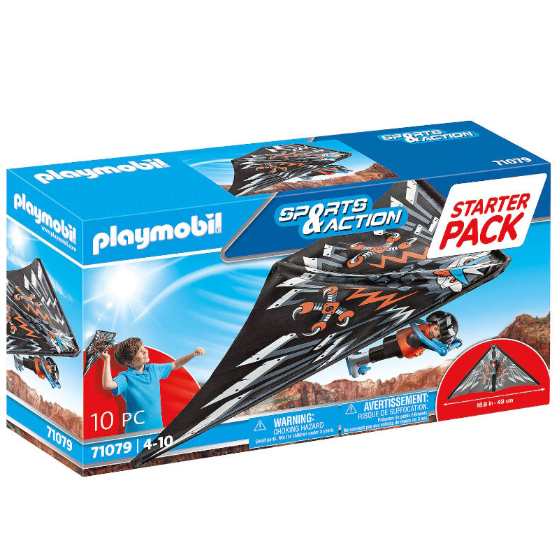 Ανεβείτε στους ουρανούς με το Starter Pack Hang Glider από την PLAYMOBIL! Ο κασκαντέρ επιδιώκει το χόμπι του όσο πιο συχνά γίνεται και γλιστράει στον αέρα με το ανεμόπτερο του. Πρώτα, βέβαια, βάζει το κράνος του και ελέγχει όλα τα κουμπιά, μετά μπαίνει στη θέση του και ξεκινά την πτήση. Τι ΔΙΑΣΚΕΔΑΣΗ! Τα πακέτα εκκίνησης PLAYMOBIL είναι η ιδανική εισαγωγή στον μεγάλο, πολύχρωμο κόσμο της PLAYMOBIL. Τα σετ μπορούν να χρησιμοποιηθούν μεμονωμένα ή να συνδυαστούν με άλλους θεματικούς κόσμους. Το σετ περιέχει μια φιγούρα PLAYMOBIL, ένα ανεμόπτερο, ένα κράνος και άλλα έξτρα. Για βέλτιστη πτήση, η φιγούρα στερεώνεται στον χαρταετό με τον σφιγκτήρα ποδιού και τη λαβή, στη συνέχεια πετιέται στον αέρα και μετά πλέει στο έδαφος. Για ευκολότερη μεταφορά, οι πλαϊνές ράβδοι χαλαρώνουν και ο χαρταετός πιέζεται μεταξύ τους.