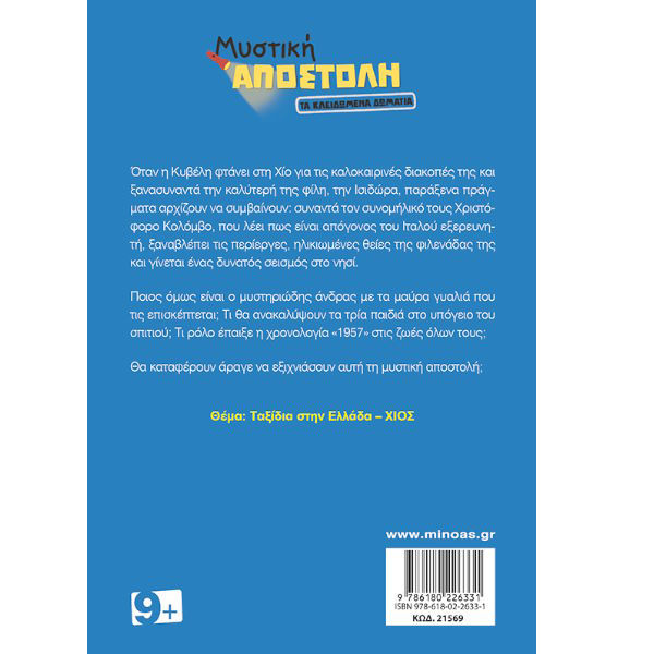 Όταν η Κυβέλη φτάνει στη Χίο για τις καλοκαιρινές διακοπές της και ξανασυναντά την καλύτερή της φίλη, την Ισιδώρα, παράξενα πράγματα αρχίζουν να συμβαίνουν: συναντά τον συνομήλικό τους Χριστόφορο Κολόμβο, που λέει πως είναι απόγονος του Ιταλού εξερευνητή, ξαναβλέπει τις περίεργες, ηλικιωμένες θείες της φιλενάδας της και γίνεται ένας δυνατός σεισμός στο νησί.
