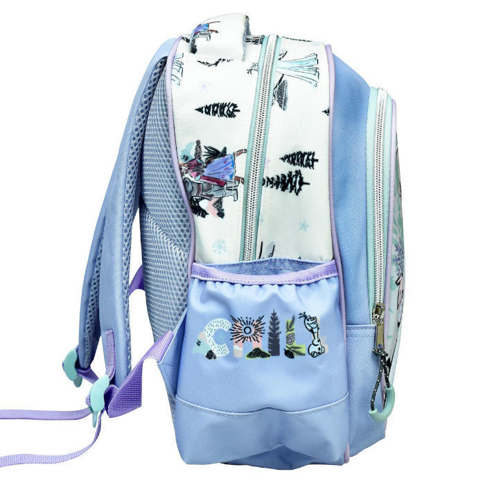 Με ανατομική και ενισχυμένη πλάτη, ρυθμιζόμενους ιμάντες και πλαϊνές θήκες για παγούρι, η τσάντα προσφέρει άνεση, εργονομία και πρακτικότητα. Το εντυπωσιακό σχέδιο με τους ήρωες του Frozen δίνει χαρά και μαγεία σε κάθε σχολική μέρα.