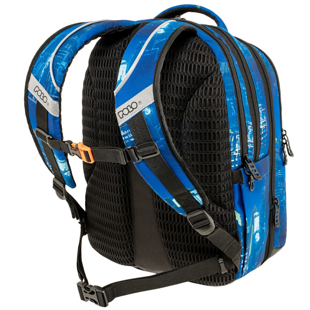 Η τσάντα πλάτης Polo Kinetic Hacker είναι σχολικό σακίδιο με 4 κεντρικές θήκες, από τις οποίες η μία είναι επεκτεινόμενη, για καλύτερη οργάνωση και προσαρμογή του διαθέσιμου χώρου. Διαθέτει επίσης 1 μπροστινή τσέπη, 2 πλαϊνές θήκες με φερμουάρ και ενισχυμένη εσωτερική θήκη για μεταφορά laptop έως 15,6".