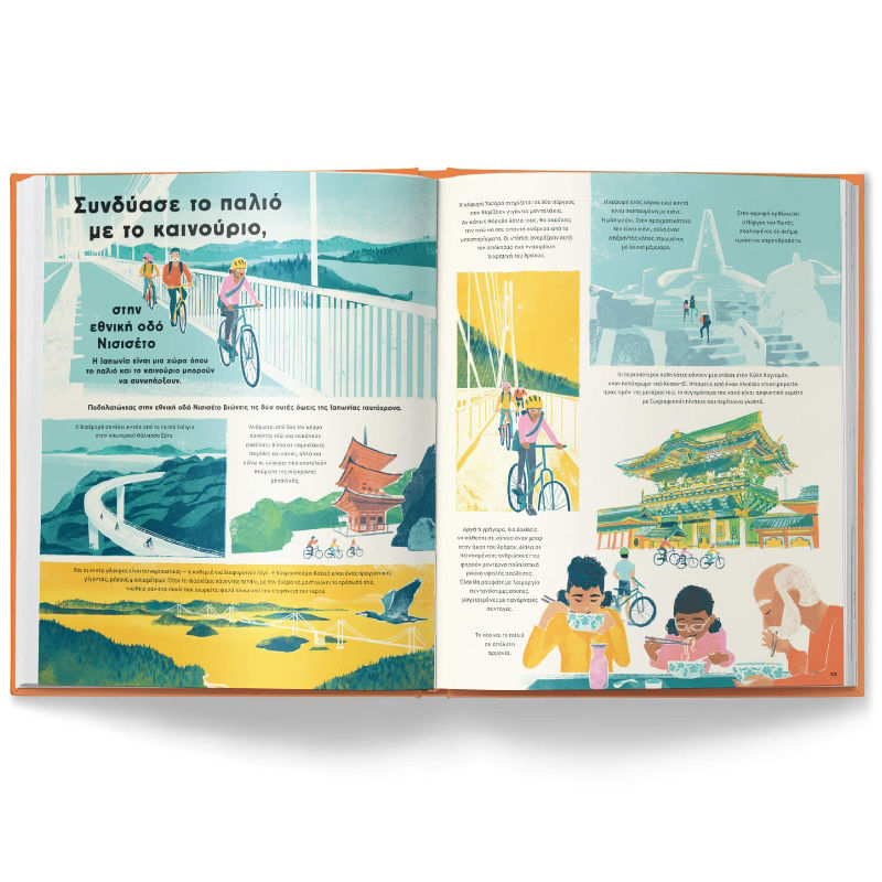 Στα ταξίδια αυτά θα γίνεις ένα με το τοπίο, θα ανακαλύψεις την Iστορία και θα γνωρίσεις ξεχωριστούς ανθρώπους καθώς θα κινείσαι αργά με τρένο, ποδήλατο, πλεούμενο ή με τα πόδια. Περιπλανήσου στην Πολιτεία του Κόκκινου Ρόδου στην Πέτρα, νιώσε τη μαγεία στον Δρόμο των Μεγάλων Λίθων, άνοιξε πανιά για το παρελθόν στον ποταμό Νείλο ή στο Αιγαίο πέλαγος… Το ταξίδι, λένε κάποιοι, είναι πιο σημαντικό από τον προορισμό. Ξεφυλλίζοντας αυτό το υπέροχα εικονογραφημένο βιβλίο, θα σιγουρευτείς πως έχουν δίκιο.
