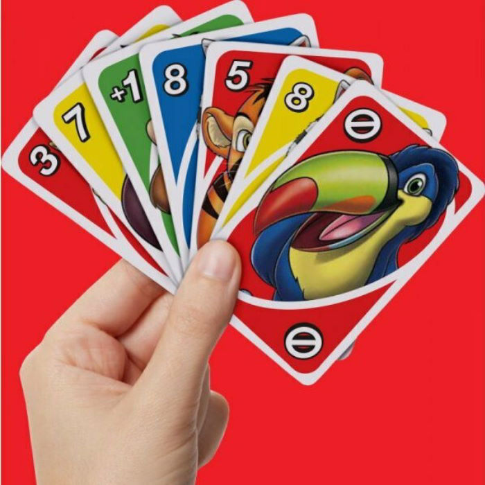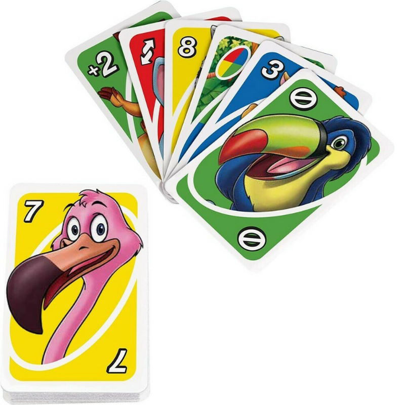 Αυτό το απλοποιημένο παιχνίδι καρτών UNO® για μικρότερους παίκτες έχει πολλαπλά επίπεδα, ώστε να προσαρμόζεται όσο μεγαλώνουν τα παιδιά. Οι κάρτες έχουν εικονογραφημένα ζώα για κάθε αριθμό από το 0 έως το 8, κάνοντας εύκολη την αντιστοίχιση ακόμα και για παιδιά 3 ετών. Τα τρία επίπεδα παιχνιδιού ακολουθούν τα στάδια ανάπτυξης του παιδιού. Οι παίκτες προσπαθούν να ξεφορτωθούν όλες τις κάρτες τους ταιριάζοντάς τες με την πρώτη κάρτα που βρίσκεται στη στοίβα άχρηστων καρτών, είτε κατά χρώμα είτε κατά ζώο/αριθμό. Όταν μείνετε με μία κάρτα μην ξεχάσετε να φωνάξετε "UNO"! Τα χρώματα και τα σχέδια μπορεί να διαφέρουν από αυτά που φαίνονται