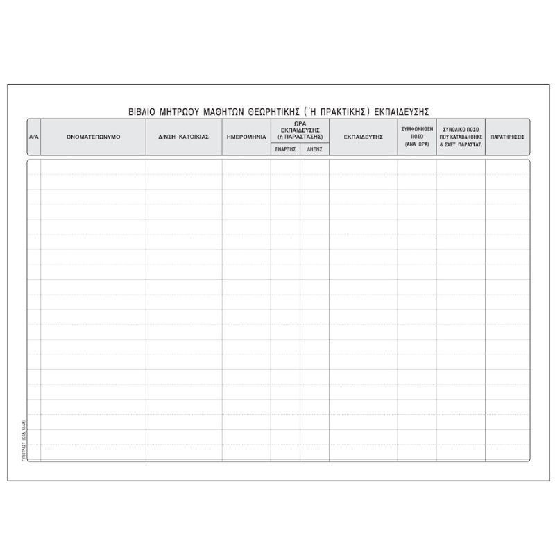 Βιβλίο μητρώο μαθητών σε σχολή οδηγών